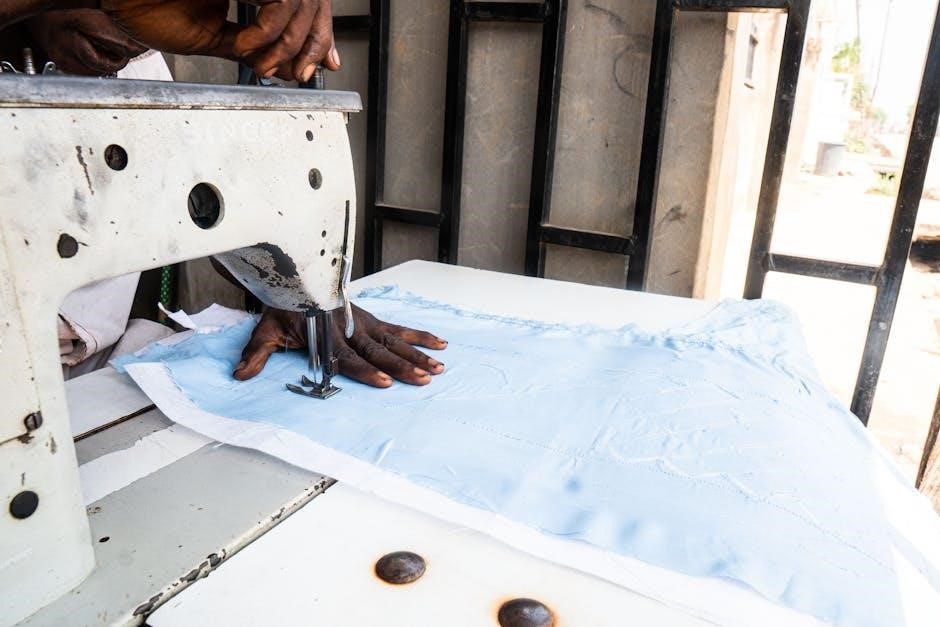Beyond these basics, the machine includes options for stretch stitches, ideal for knit fabrics, preventing puckering and ensuring comfortable wear. Decorative stitches add a personal touch to projects, offering patterns for embellishment. Refer to the machine’s manual for a detailed illustration of each stitch and its recommended uses. Experimenting with different stitch settings allows for creative expression and tailored results. Proper stitch selection significantly impacts the durability and appearance of your finished projects. Always test stitches on scrap fabric before applying them to your final garment or craft.