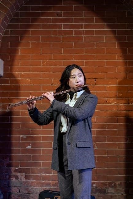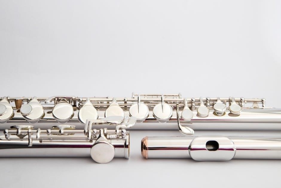 Chromatic scales, available as PDF fingering charts, encompass all twelve tones, demanding precision and agility. Mastering this scale expands flute technique significantly.