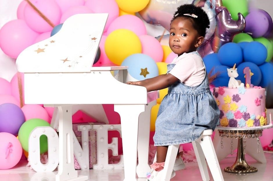 When approaching “Happy Birthday” sheet music, understanding basic note reading is crucial. The staff consists of five lines and four spaces, each representing a specific pitch. Notes placed higher on the staff generally correspond to higher pitches. Beginner PDFs often focus on notes within the treble clef, commonly used for the right hand, and bass clef for the left.