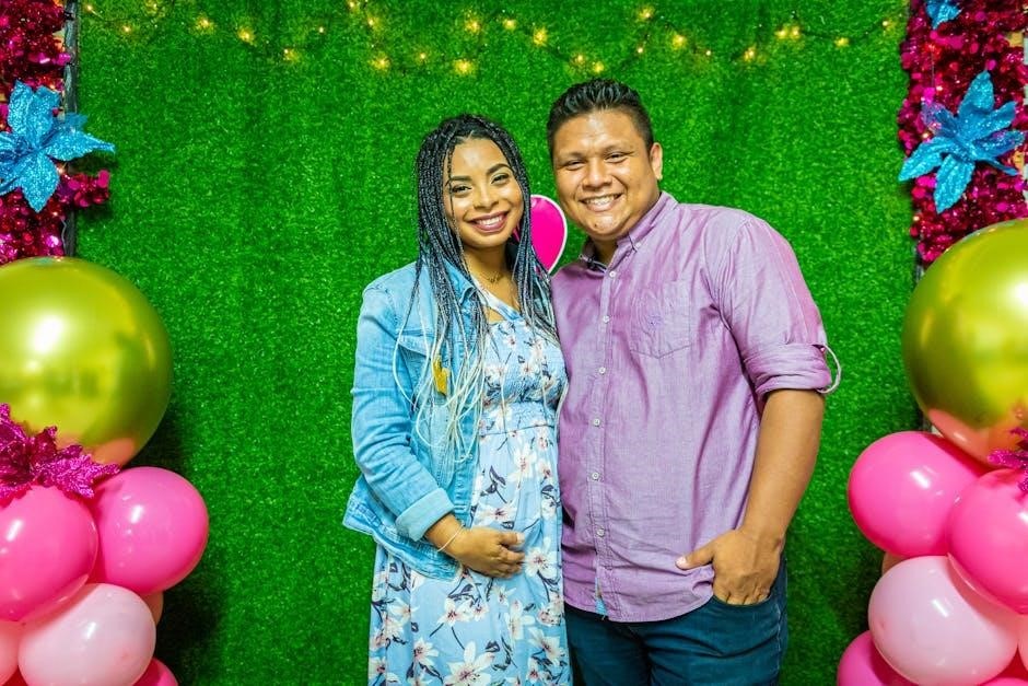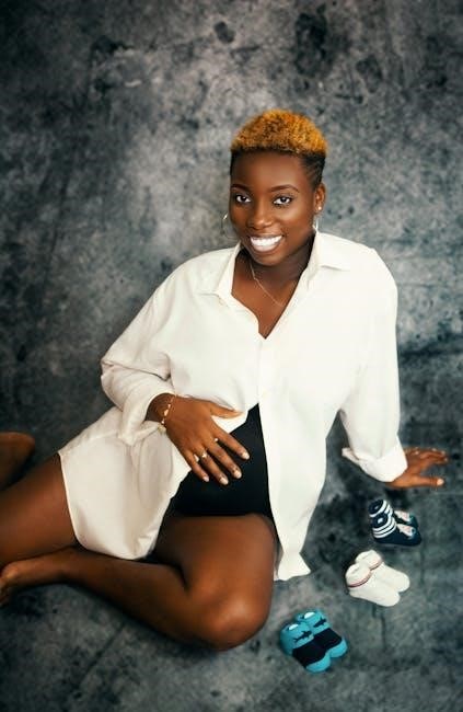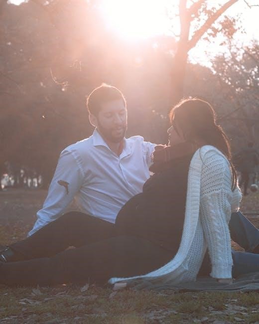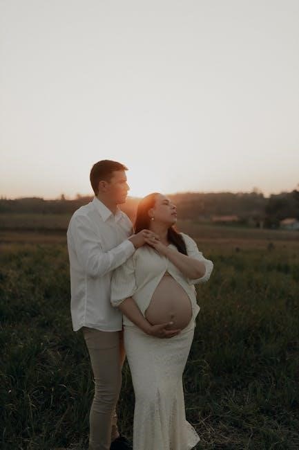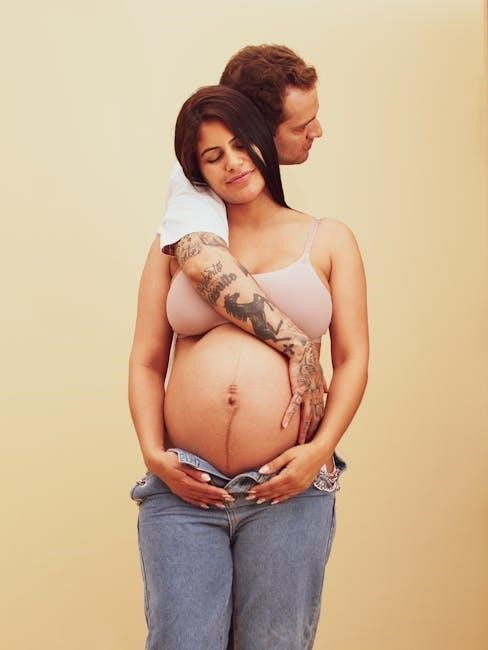 The PDF details feeling baby’s movements, physical changes, prenatal screenings, and managing discomforts—a period of growth and anticipation for parents.